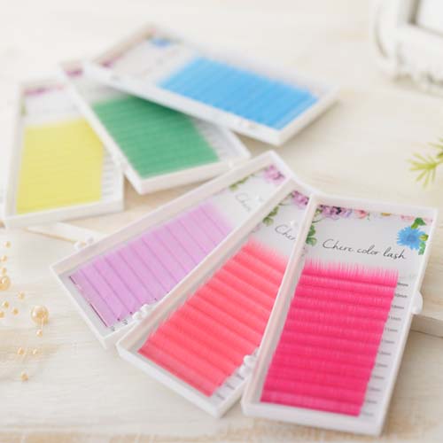 まつげエクステ-シェリーカラーラッシュ 12列-C/Jカール【ライトグリーン】